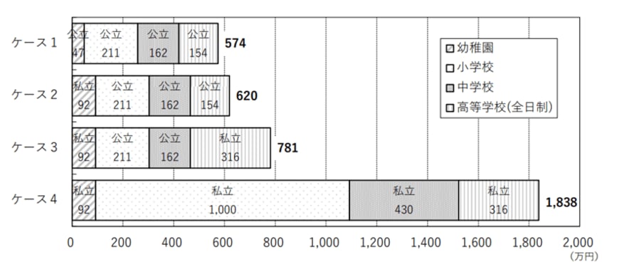 幼稚園から高校まで私立に通わせると、1800万円以上の費用がかかることが明らかになりました。