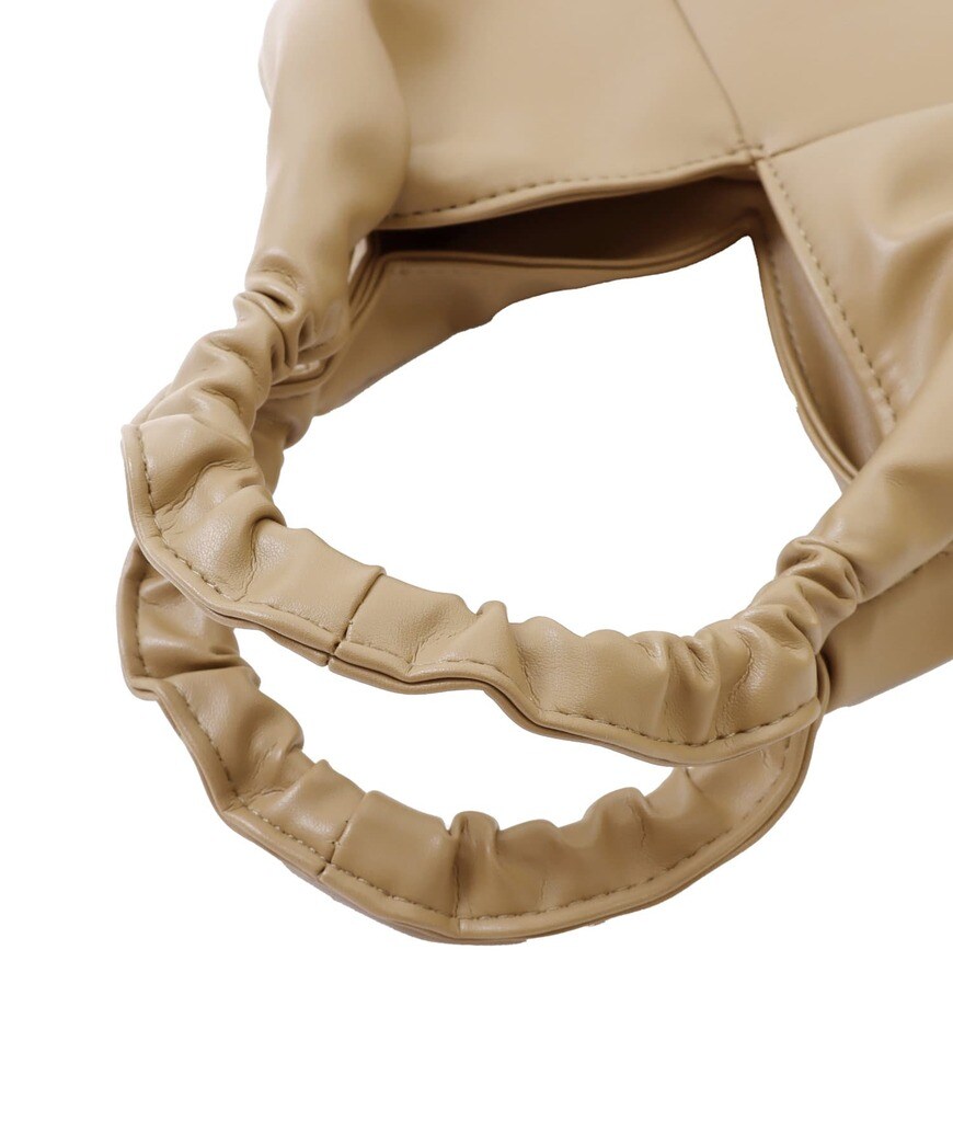 くしゅくしゅとした持ち手もかわいいアイテムです。プチプラながら、安っぽくは見えないバッグです。