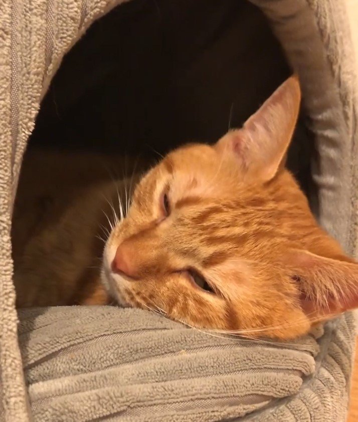 2本目の動画には「今にも眠りに落ちそう……」といった具合で、目を細めるきいちゃんの姿がおさめられていました。