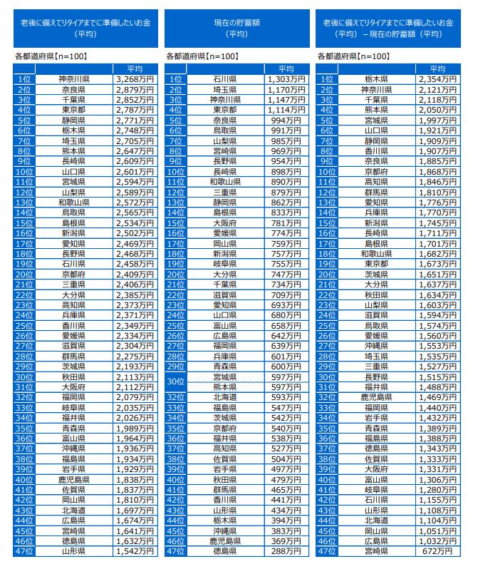 「貯蓄額」理想と現実のギャップが激しい都道府県