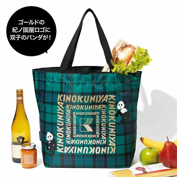 これまでも高い人気を誇ってきたKINOKUNIYAアイテムの付録。今回は、前回登場した際も話題となったケイタマルヤマコラボのカワイイ双子パンダが登場しました。ゴールドの紀ノ国屋ロゴとチェック柄で、大人が使ってもおしゃれなデザインとなっています。