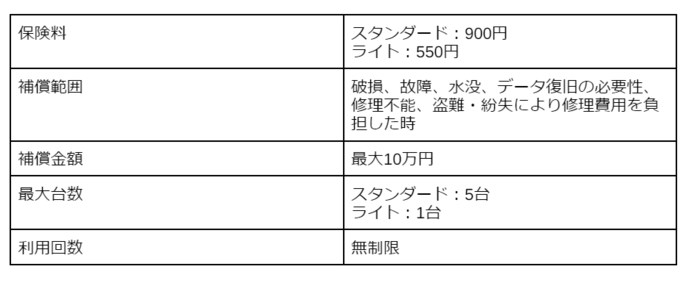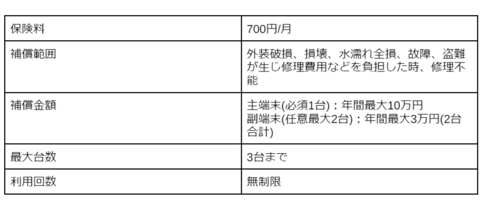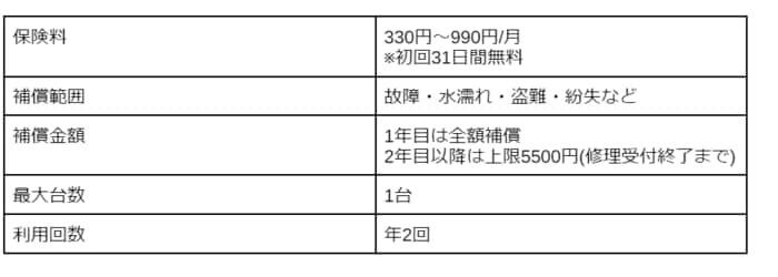 一方、修理費の上限が5500円のため、AppleCare+加入時と比較してやや割高。また端末購入日または回線契約日を含め14日以内に申し込む必要があることが注意点です。