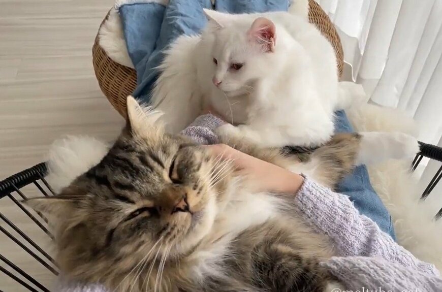 投稿された動画からも、猫ちゃんたちの大きな安心感や、飼い主さんが注ぐ「深い愛情」がたっぷりと伝わってきます。