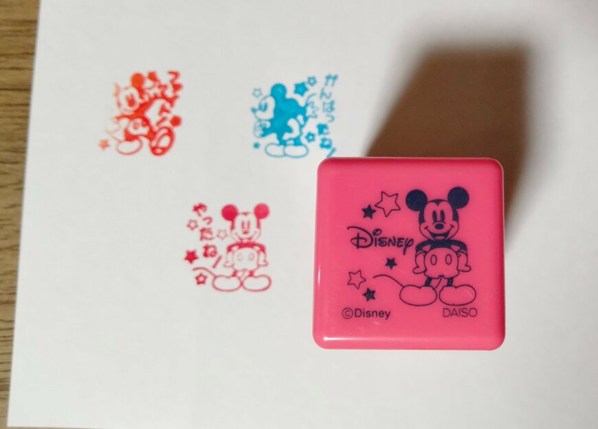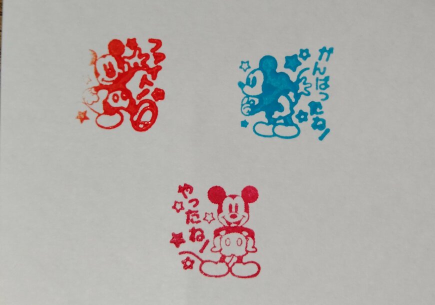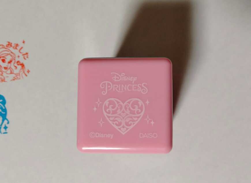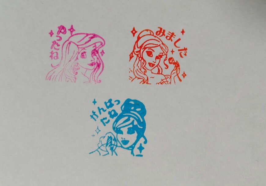 こちらはディズニープリンセスデザインの印面写真です。「やったね」「みました」「がんばったね」という一言が入っています。