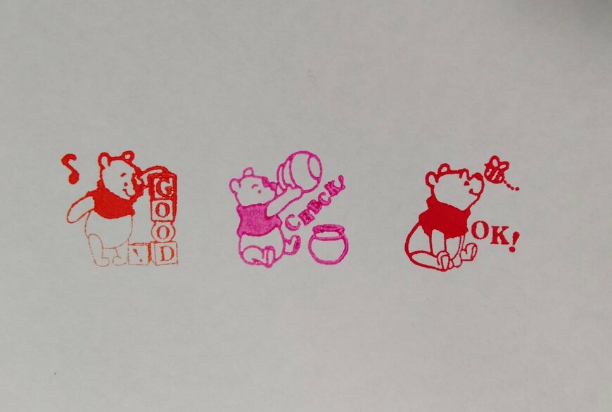 こちらはくまのプーさんの印面です。「GOOD」・「CHECK」・「OK」といったコメントがついています。