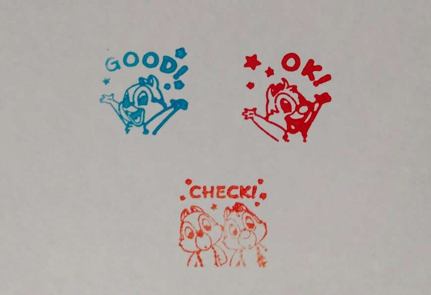 こっちはチップとデールのデザインのスタンプです。「GOOD」・「OK」・「CHECK」のコメントがついています。