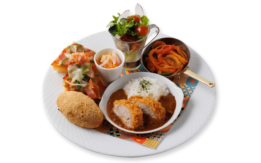 また昔ながらのピザトーストや給食メニューの定番・きなこ揚げパンもミニサイズで用意。コールスローサラダやグリーンサラダもあるので野菜もしっかり摂れますね。