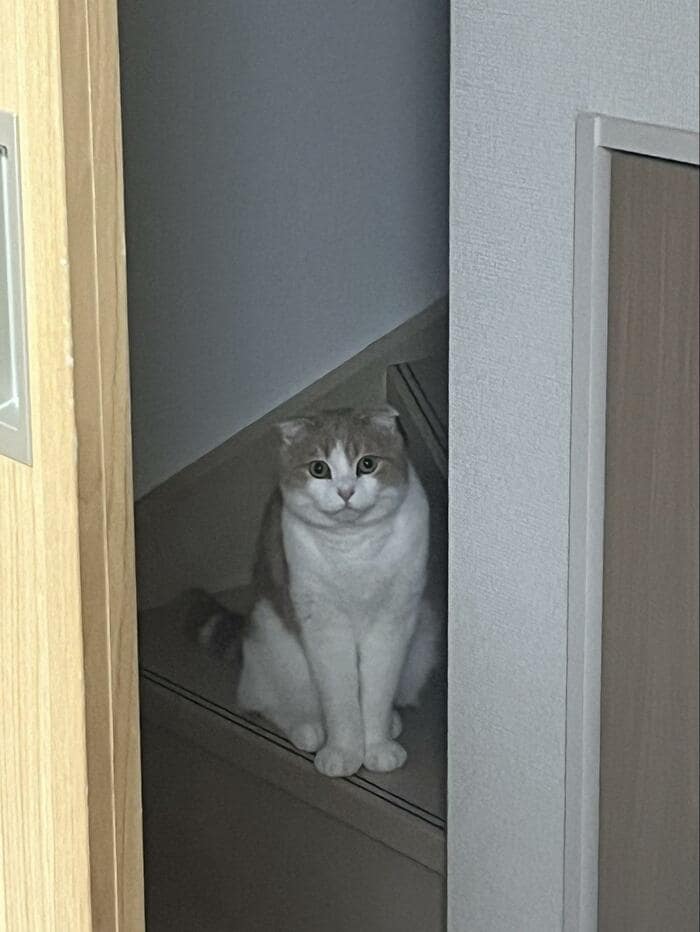 飼い主さんに「遅かったニャ!」と訴えたかったのでしょうか。暗闇も相まって、少しだけ漂うホラー感にも笑みがこぼれてしまいます……!どことなく熱い意思が伝わってくる姿がとっても可愛くて、なんだかホッコリする瞬間でした。