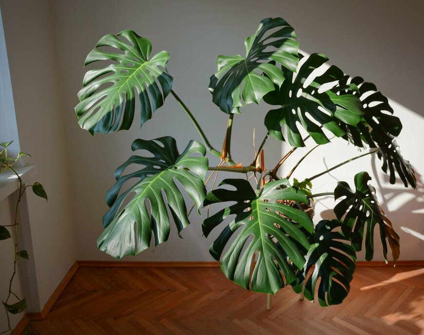 モンステラは西の方角に置くと金運をもたらす効果がある、とされています。※参考価格:1500~3000円前後(4号鉢)