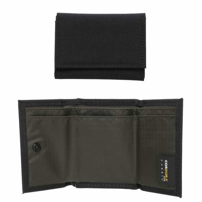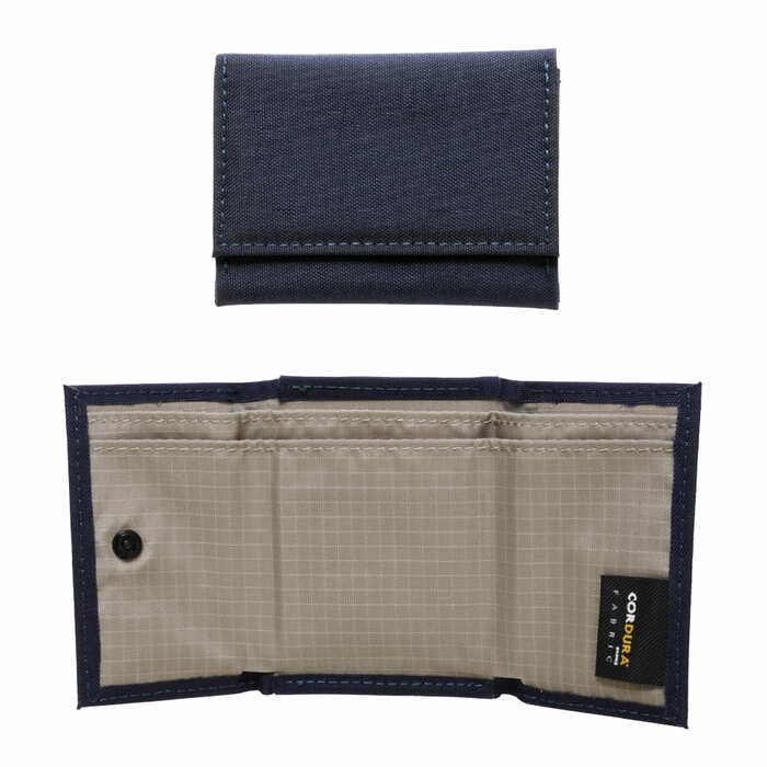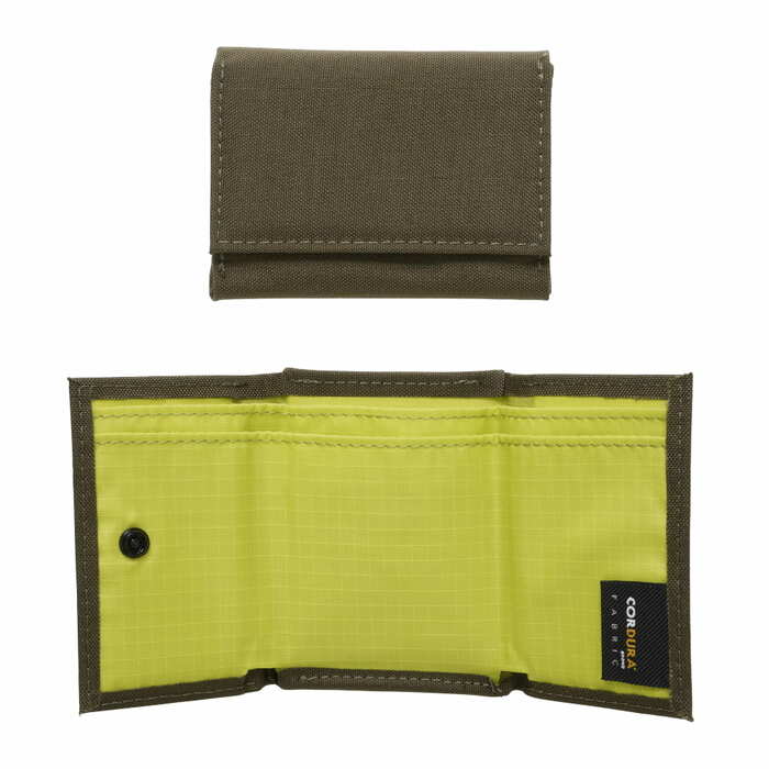 手の平サイズのコンパクトなお財布です。耐久性に優れたCORDURA®生地を使用しています。スナップボタンで開閉スムーズ、内側の生地はこだわりのカラーがおしゃれですね。胸ポケットにもすっぽり収まるコンパクトサイズなので持ち運びもラクラクです。