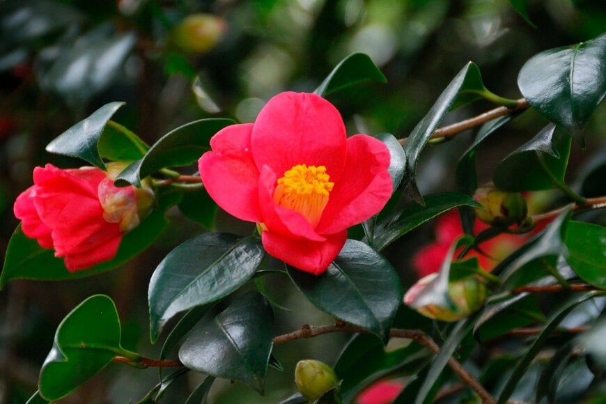 ツバキ、サザンカは冬に花が咲く品種。レッドやホワイトの花は大変美しく、日本でも昔から愛されている植物です。クチナシやジンチョウゲは日陰でも育てることができますが、やや花つきが悪くなります。