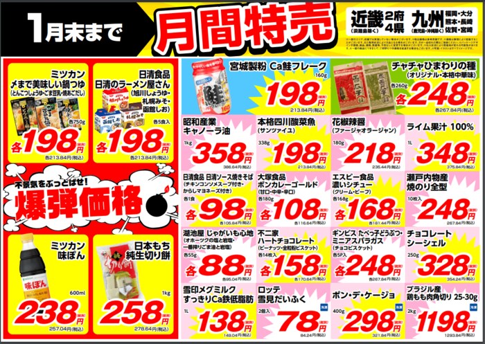 今回は、通常品でもお得な業務スーパーの中でさらにお買い得な「月間特売」商品を東西別にピックアップしてみました。1月末までの価格なので、見逃さないようチェックしてくださいね。