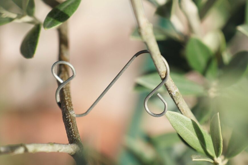 形状はS字型や丸型などさまざま。ワイヤーで縛ると茎が傷みがちですが、柔らかいカーブになっているので植物にも優しいツールです。