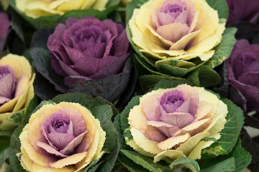 オシャレで存在感のあるハボタンがたくさんあり、その多様さを楽しむのもハボタンの楽しみ方のひとつ。ハボタンだけを組み合わせても、とてもオシャレに仕上がります。
