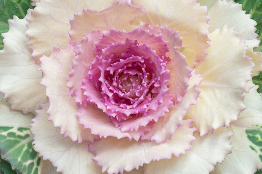 意外かもしれませんが、ホワイトカラーのハボタンはロマンチックな寄せ植えや花壇にオススメです。特に、ピンク色が入り混じった品種はガーリーな雰囲気を演出できるでしょう。