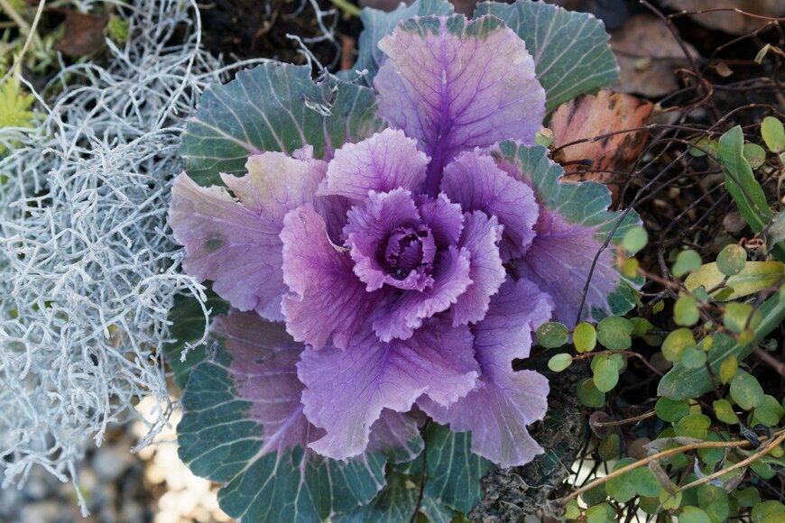 踊りハボタンは大きく育つ姿を楽しむものなので、寄せ植えなどでコンパクトに楽しみたい人は、春まで一年草として育てるとよいでしょう。