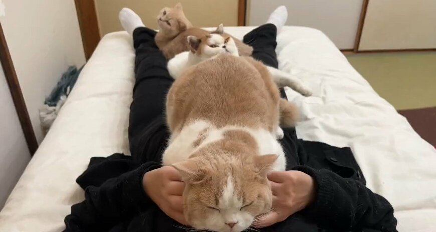まるでお布団……お母さんの上でくつろぐ猫さんの動画が話題に