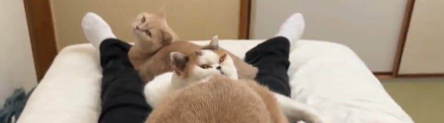 「猫に囲まれる生活」というコメントと共に投稿された動画が反響を呼んでいます。