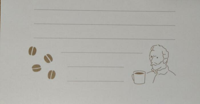 罫線上部には、手紙のイラストが描かれています。膨大な量の手紙を出していることで有名なゴッホらしいイラストです。