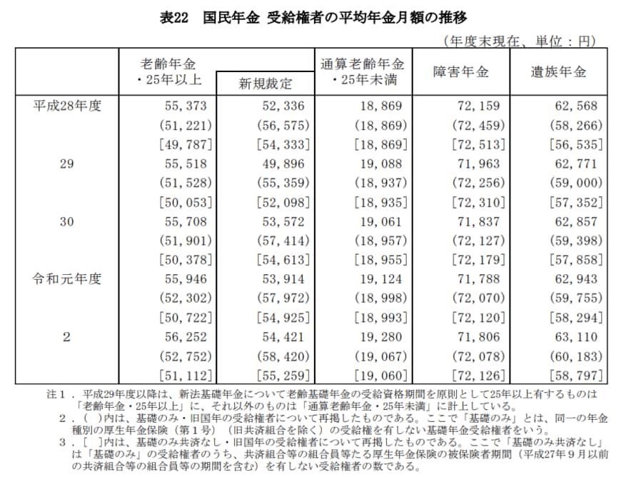 2.2 〈2016年~2020年〉国民年金の平均月額