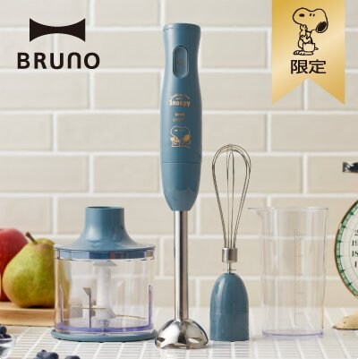 人気の「BRUNO」にスヌーピーが登場しています。つぶす・混ぜる・刻む・砕く・泡立てるといった調理工程を1台で行えるマルチスティックブレンダーです。