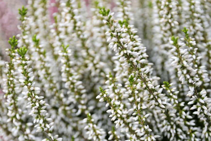 空に向かって伸ばした枝に、小さな花をビッシリと咲かせるカルーナは、夏の終わりから冬にかけて開花する常緑低木樹。