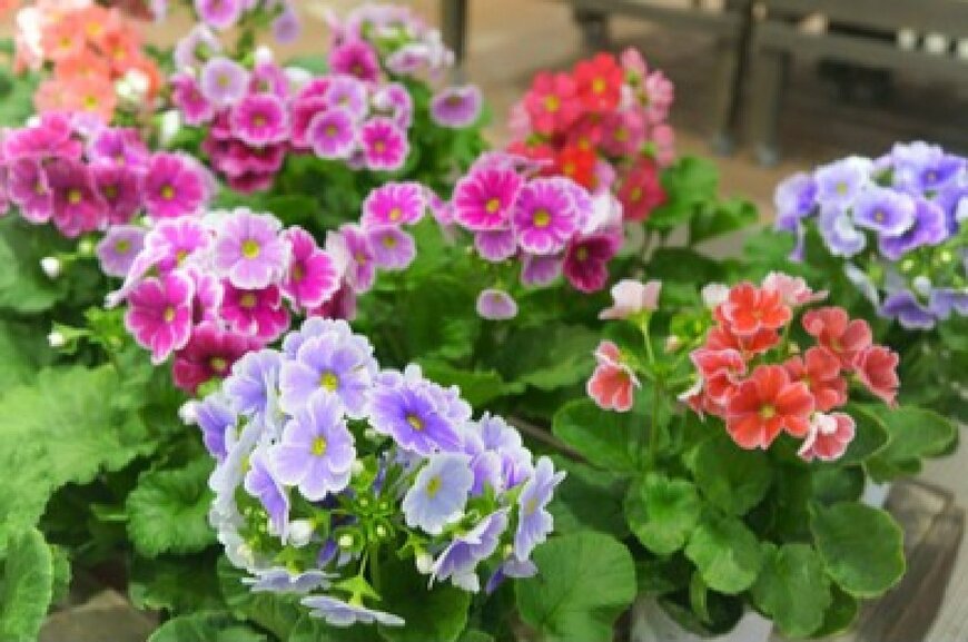 「トキワザクラ」という和名でも知られるオブコニカ。多彩なカラーバリエーションで冬の庭を華やかに演出してくれます。
