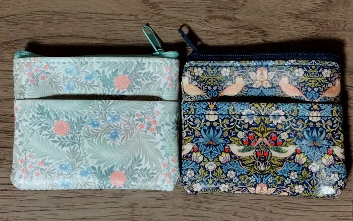 こちらがセリアで販売されている「モリスデザインのコインケース」です。写真のように、2種類のデザインがあるアイテムです。