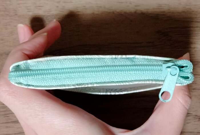 ファスナーもミントグリーンとなっています。「飛燕草」のデザインと調和が取れていて美しいです。
