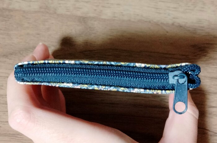 ファスナーはブルーです。いちご泥棒のデザインとマッチしているのも魅力です。