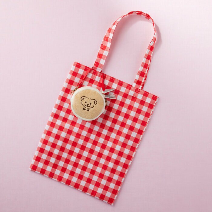人気ベアフルのバレンタイ新作グッズがは、タリーズの「キッズパンケーキ」をイメージしたポーチ「パンケーキ型ポーチ」と「赤のチェック柄エコバッグ」の可愛すぎるセット。ポーチには、ナイフとフォークのチャームが付いていて、テンションあがるポイントになっています。