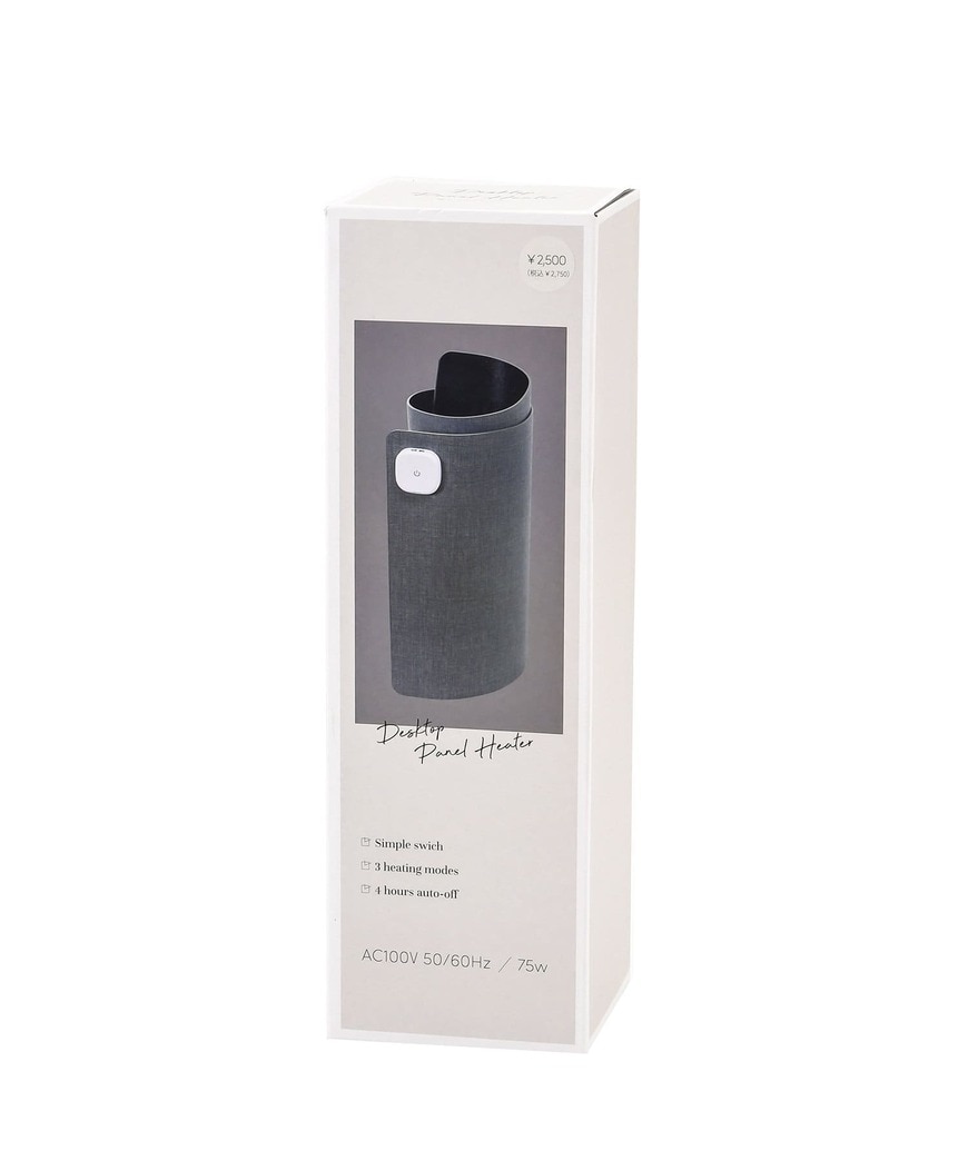 3COINSの机に敷くヒーターは、写真のように箱もおしゃれなアイテムとなっています。価格のシールはきれいにはがすこともできます。