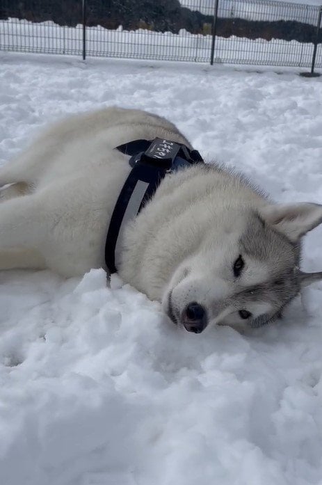 ユキちゃんは起き上がらずに、雪をペロリ。なんとも愛らしいリアクションです……!頑なに動こうとしないユキちゃんの反応に、思わず笑みがこぼれてしまいました。
