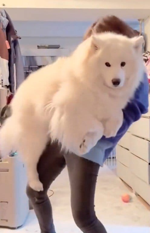 「サモエド成犬男子30kg…重すぎる…!!!」そんな書き込みとともに投稿された1本の動画が反響を呼んでいます。