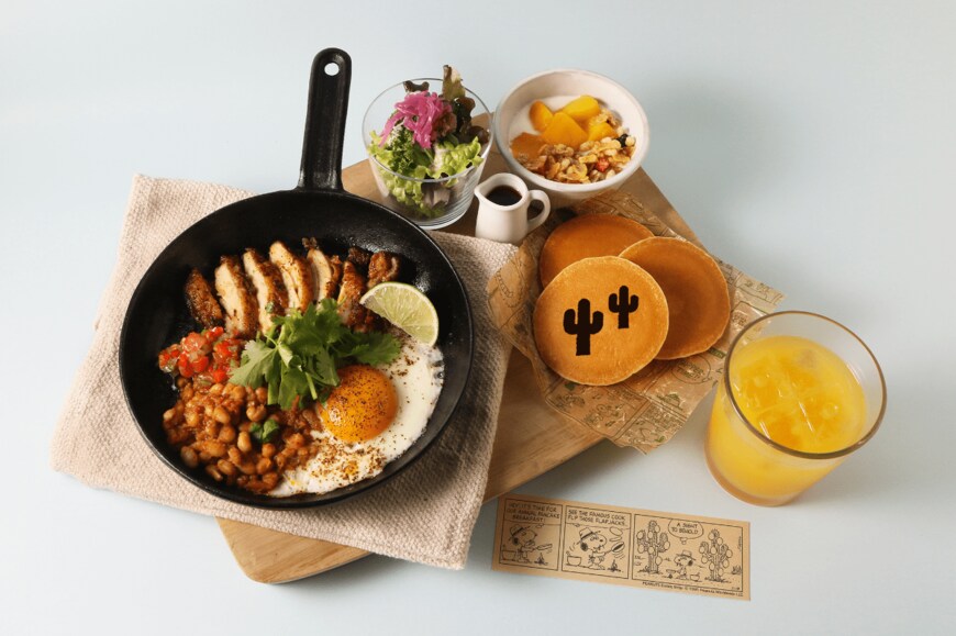「シェフ スパイクのメキシカンパンケーキ(1980円・税込)」は、砂漠に住むスパイクがシェフに扮してパンケーキを作るシーンを再現。サラダ、マンゴーヨーグルト、チキン、パンケーキのプレートにアレンジしたメニューです。