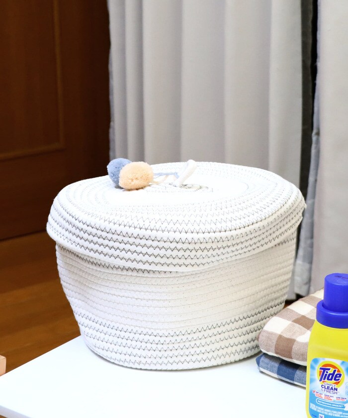 蓋がついているので、生理用品などお手洗いでさりげなく収納したいアイテムを入れるのにピッタリ。また、ホコリなどが入るのも防いでくれるのでストックなどを入れておくにもいいですね。