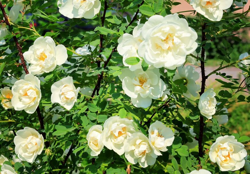 純白でポンポン咲きの花が愛らしいスノーグース。ナチュラルで優しい雰囲気があります。初冬まで花が咲き続け、高い耐病性で育てやすいバラです。※参考価格:4000~5000円前後(大苗)