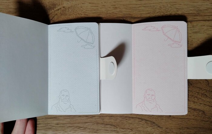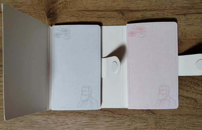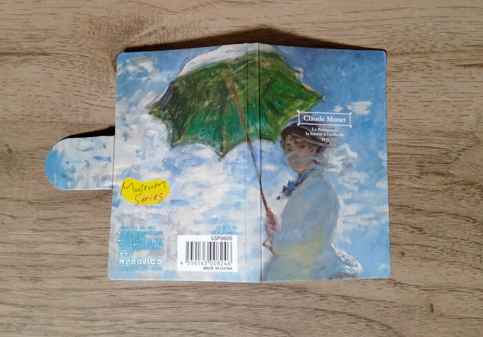 《散歩、日傘をさす女》と《睡蓮》で、メモ帳のイラストは共通しています。ただし、ベースとなるカラーは異なります。