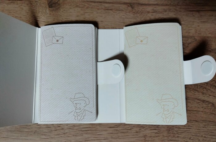 上の写真の「手紙」と「ゴッホ」のイラストが入っているものと、下の写真の「コーヒー豆」と「コーヒーを飲むゴッホ」のイラストが入っているものの2種類です。