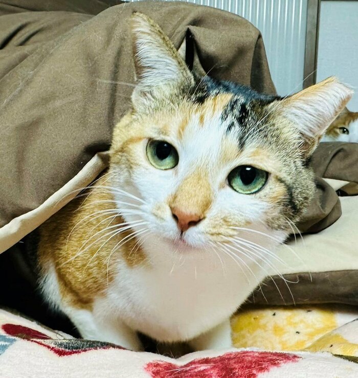 きゅるんと輝くまん丸の瞳や、優しい毛色の三毛柄がとってもチャーミングなちび太ちゃん。同居猫ちゃんとちび太ちゃんの「何気ない日常の一コマ」に、自然と心が温かくなりました。