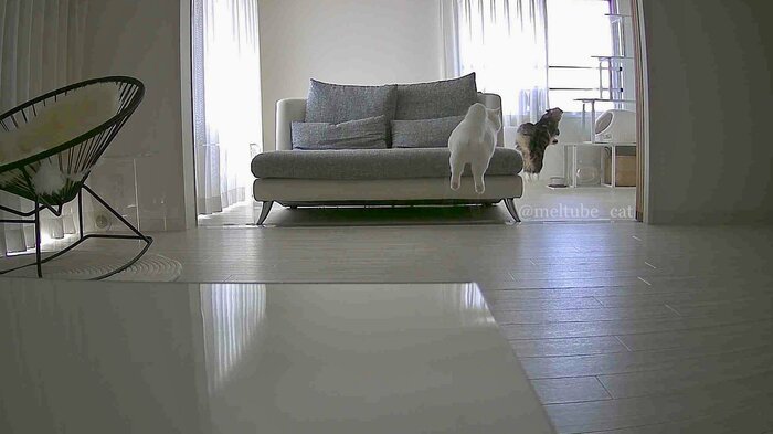 飼い主さんが外出していた際に、ペットカメラから送られてきた画像がTwitterに投稿され注目を集めています。