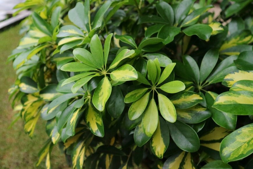 シェフレラは室内でも戸外でも育てることができる強健な観葉植物。人気の「シェフレラ・コンパクタ」は幹と葉のバランスがお洒落な品種です。玄関でも育てやすいでしょう。