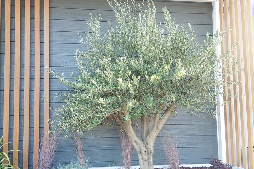 寒さに強いオリーブは戸外で育てられることが多い常緑樹。濃い葉が美しく、株姿もお洒落なので庭先で植えられているのをよく見かける植物です。