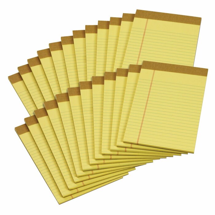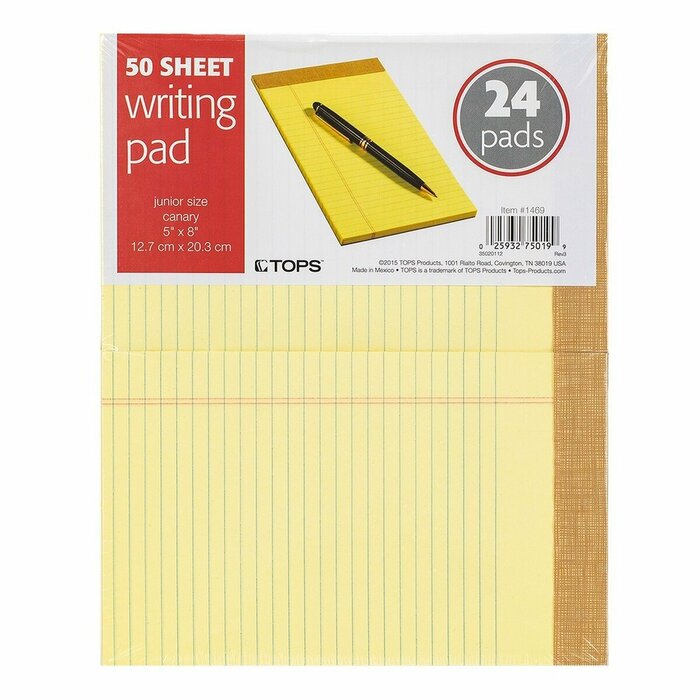 白い紙では電灯の光が反射して見えづらいという方におすすめなのが、「ジュニアサイズイエローパッド 24冊入」です。持ち歩きやすいサイズ感で、メモとして使うのに便利ですよ。