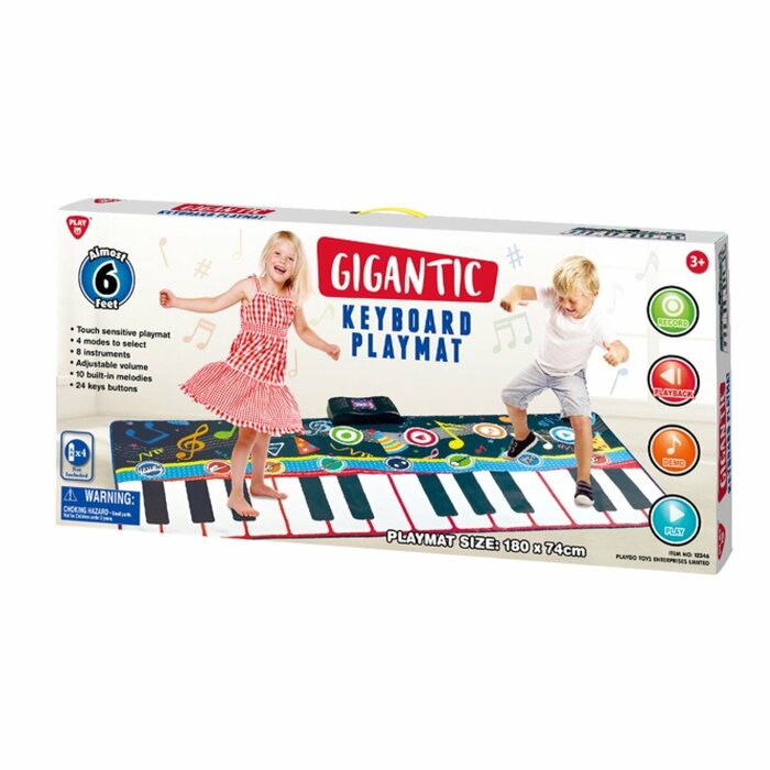 「ジャイアント キーボードプレイマット 約180cm」は、脚で踏むタイプのキーボードです。8種類の異なる楽器の音が出せるほか、10種類の楽曲を内蔵、さらに24個のキーボタンを使ってオリジナルの曲を作曲したり再生したりすることも可能です。