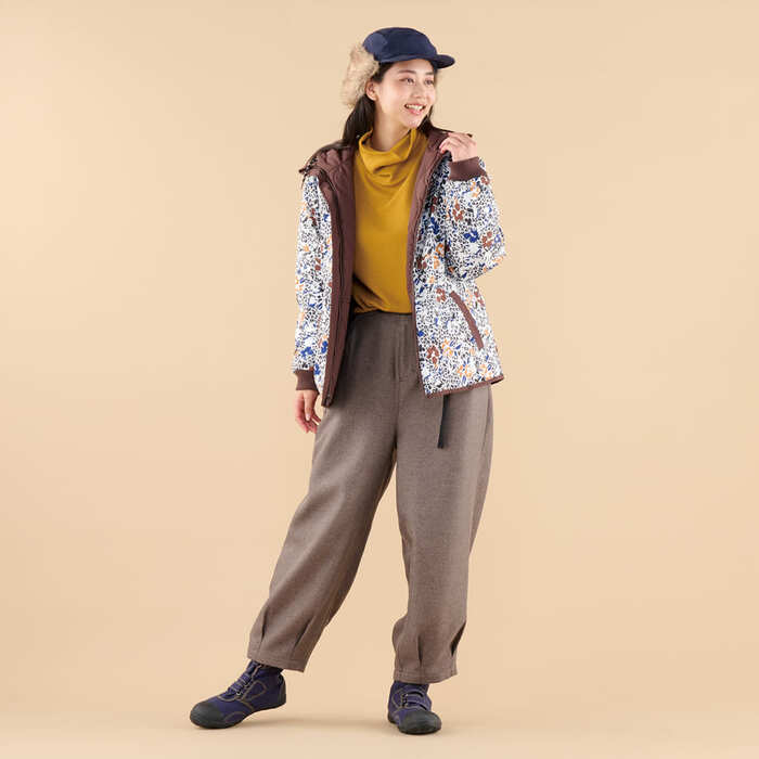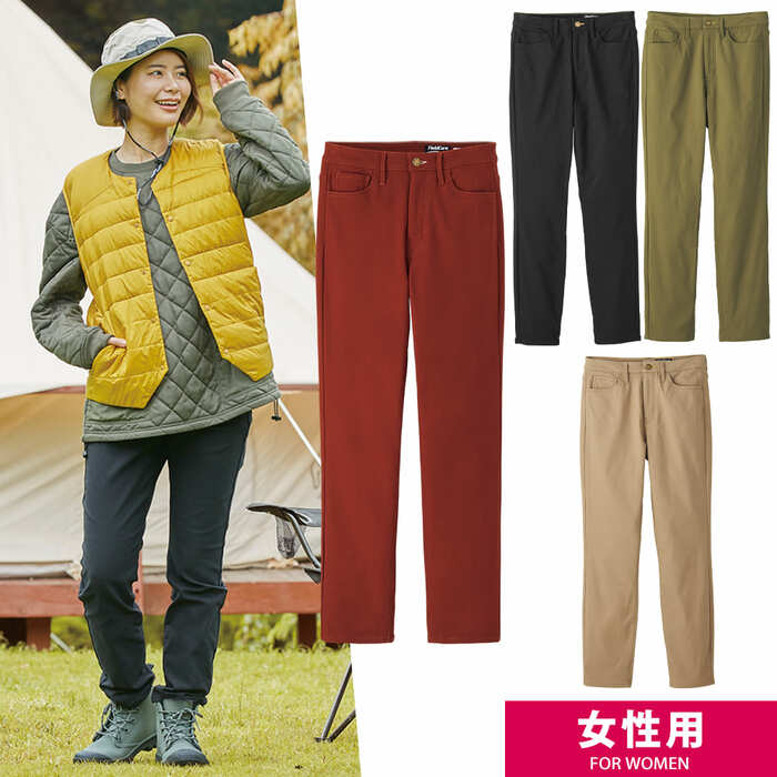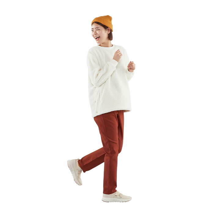 裏起毛で暖かく、ストレッチのきいた楽ちんパンツ。動きやすく、お出かけにも家でくつろぐのにも快適な履き心地です。便利なポケットが5つも付いているのに、スッキリとしたシルエット!キレイめなコーディネートにも合わせやすいので、オフィスカジュアルとしても活躍しそうですね。