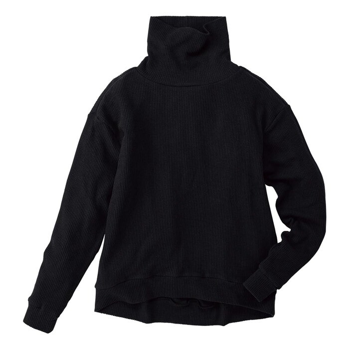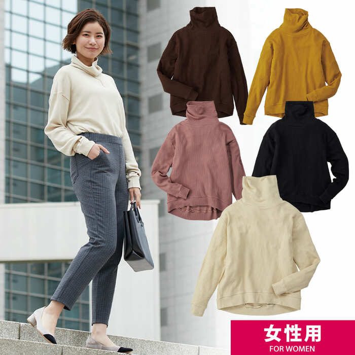 スッキリとしたデザインでリブ編みでも体のラインを拾わず、首回りはゆとりがありタートルネックでも苦しくない点が、着やすさのポイントのようです。生地がやわらかく、軽くて薄手なのに暖かい、肌触りも好き、という声も多く「着心地抜群!コスパ最高!」と高評価の商品です。