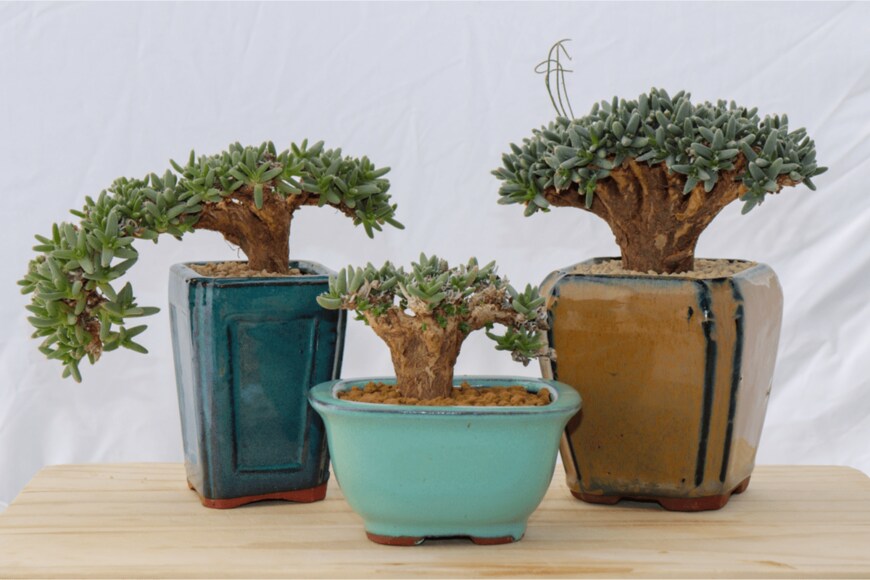 トリコディアデマはドッシリとした根茎がユニーク。肥大した根茎が特徴のコーデックスの1種です。クネクネと曲がる枝ぶりが楽しめ、盆栽のように仕立てる楽しみがあります。