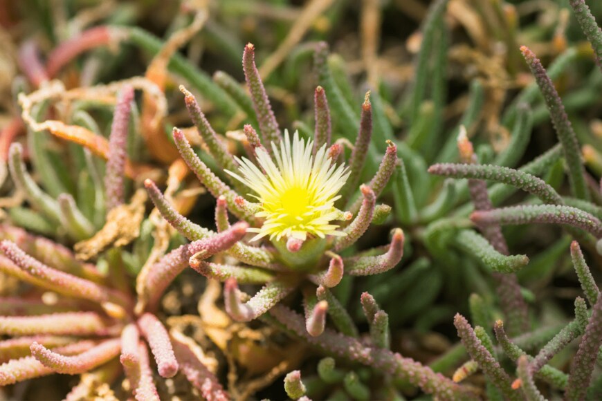 高原の平原や岩場に生息しているフィロボルス。細い葉が四方八方に開き、まるでミニ盆栽のような株姿になります。葉には白い突起物が付き、鮮やかな花を咲かせる品種も。日光を好むので、日当たりのよい場所で育てましょう。