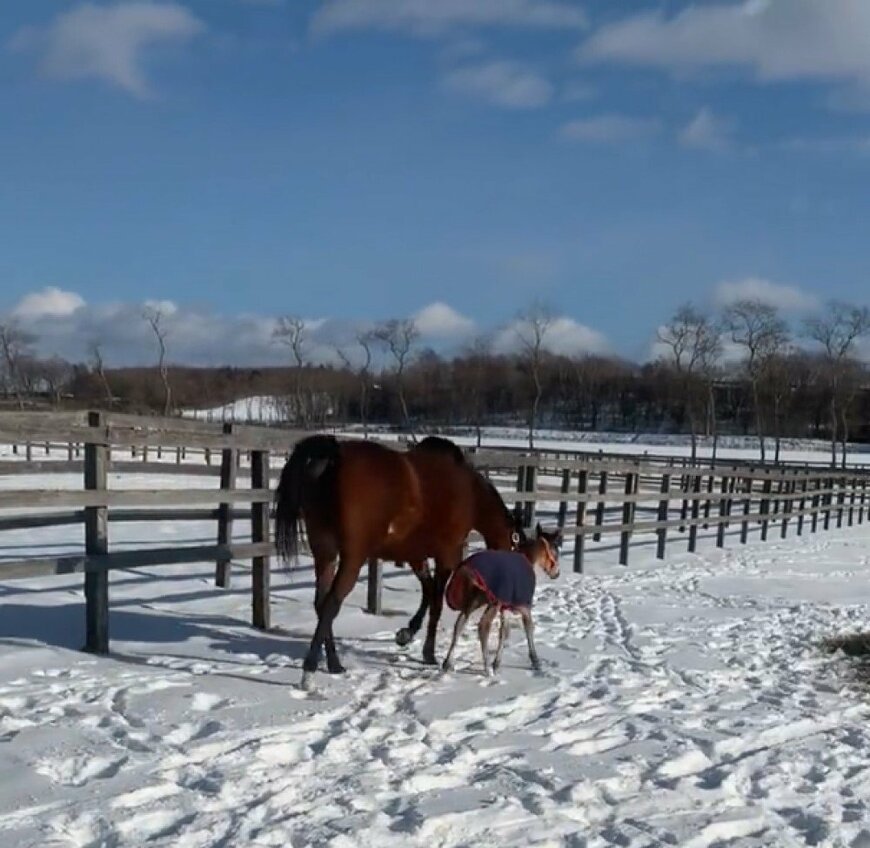 一緒に投稿された動画には、母親にくっつきながらトコトコと牧場内を歩く姿が収められています。一生懸命歩く様子に、思わずキュンとしてしまいます。このような経験を経て、少しずつ成長していくのでしょうね。